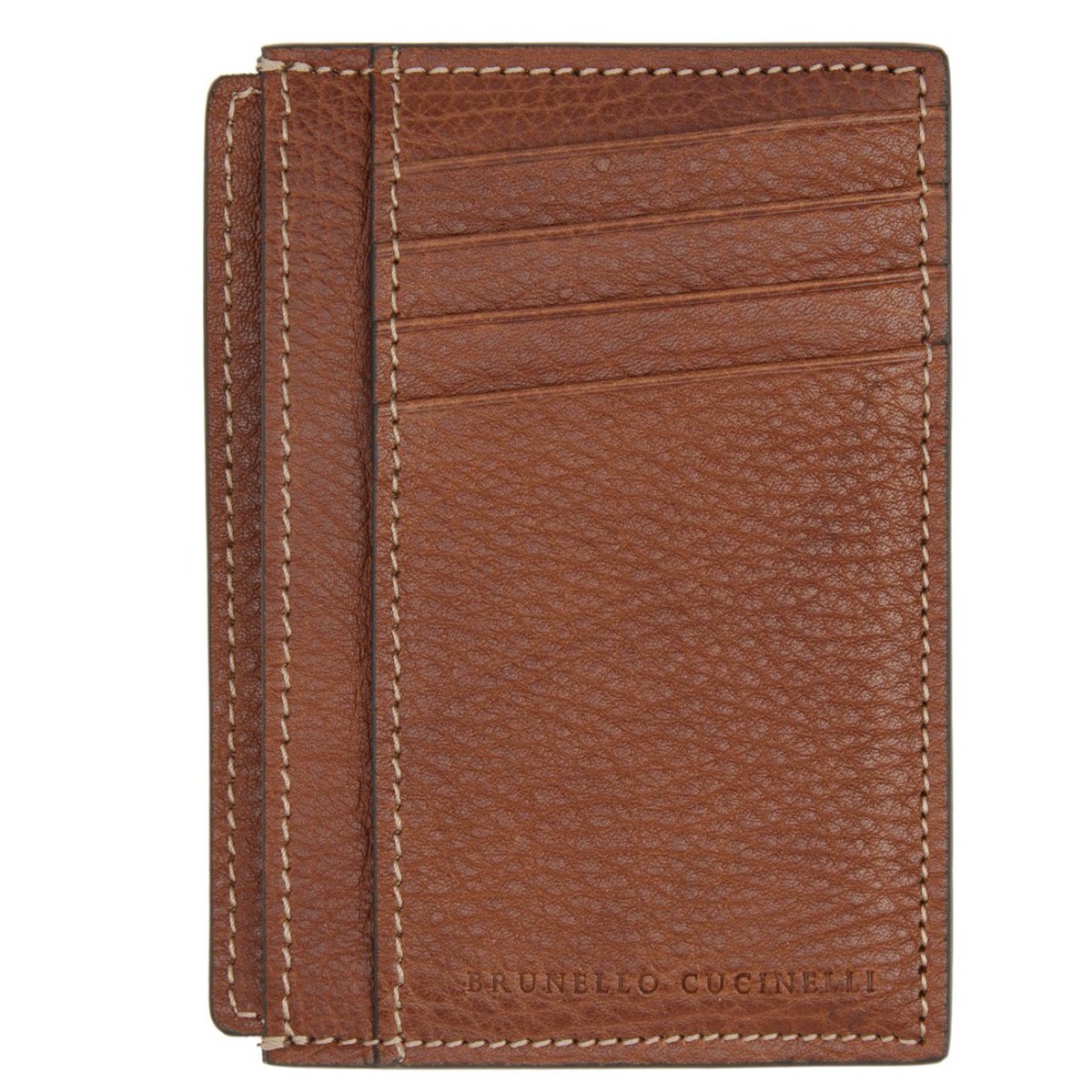 L: cucinelli card case. fully machine sewn for $450. look at holes btw stitches