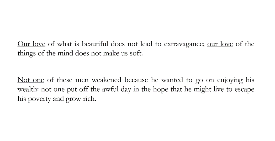 (This version of his speech was translated into English by the great classical scholar Rex Warner; rhetorical techniques work in any language)