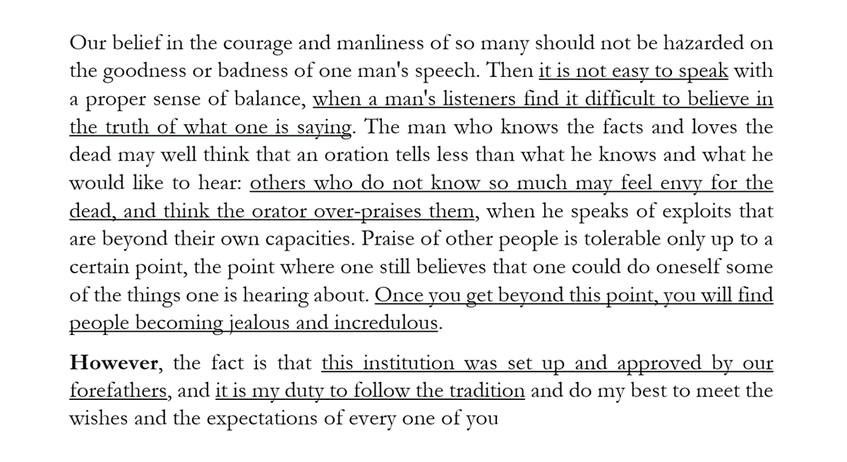 Analysing one of the greatest speeches in history: Pericles' funeral oration in 430 BC.