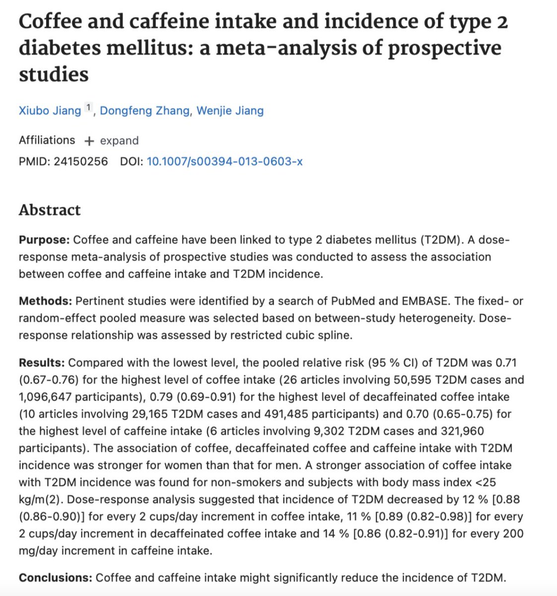 According to this study caffeine significantly reduces the incidence of type 2 diabetes.