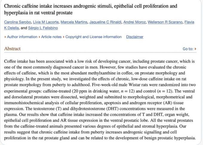 In this study on mice caffeine raised T and DHT by 68% and 57% respectively.