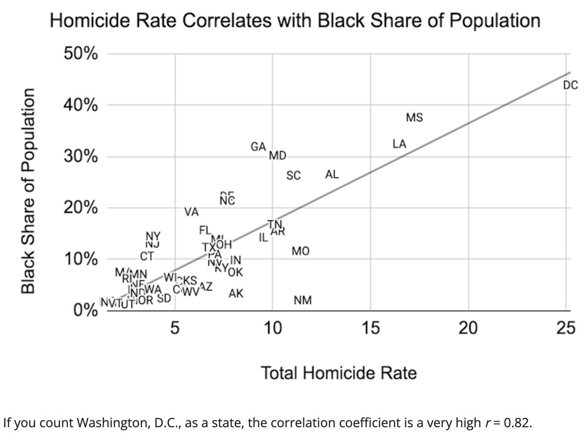 @mattyglesias At the state level, the per capita homicide rate is largely driven by the black share of the population, with (as in Oklahoma, NM, AK, SD) the American Indian share playing a minor role: