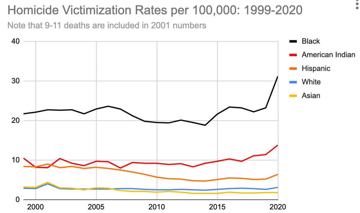 You can see the Ferguson Effect in 2015-16 on black homicide death rates, and of course the vast Floyd Effect in 2020. Few know that Hispanic homicide rates dropped sharply from 2005-2014. Asian victimization drifted down even in 2020 contrary to narrative unz.com/isteve/does-gu…