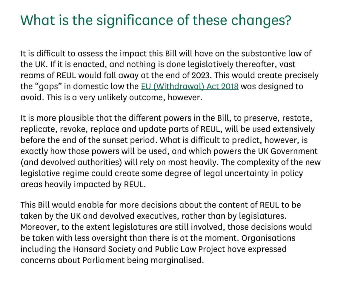 The Retained EU Law (Revocation and Reform) Bill is a huge power transfer to the executive, allowing the government - with almost no parliamentary scrutiny, to change vast swathes of our law. The most consequential and boringly named bill in our history?