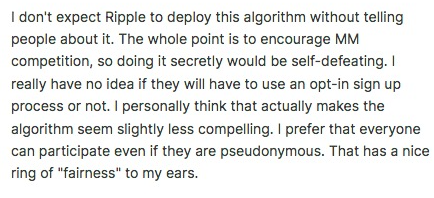 He's using very big words. "secret sauce" and "game-changer." He also tells us it's "planned." It will give automatic market makers more incentives to provide liquidity.