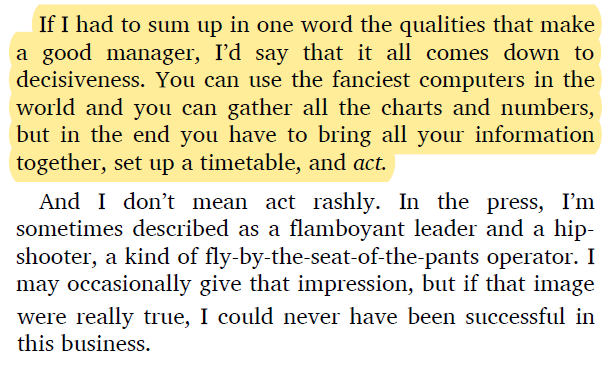 Lee Iacocca: "If I had to sum up in one word the qualities that make a good manager, I’d say that it all comes down to decisiveness."