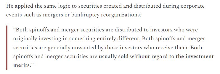 Spin-offs were a classic example of forced or disinterested sellers. Joel Greenblatt and Seth Klarman wrote about them. This created a cottage industry of people exploiting the opportunity, making the market more efficient.