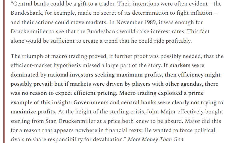 "Macro trading exploited a prime example of this insight: Governments and central banks were clearly not trying to maximize profits."