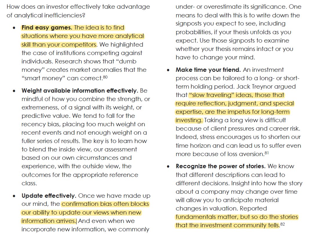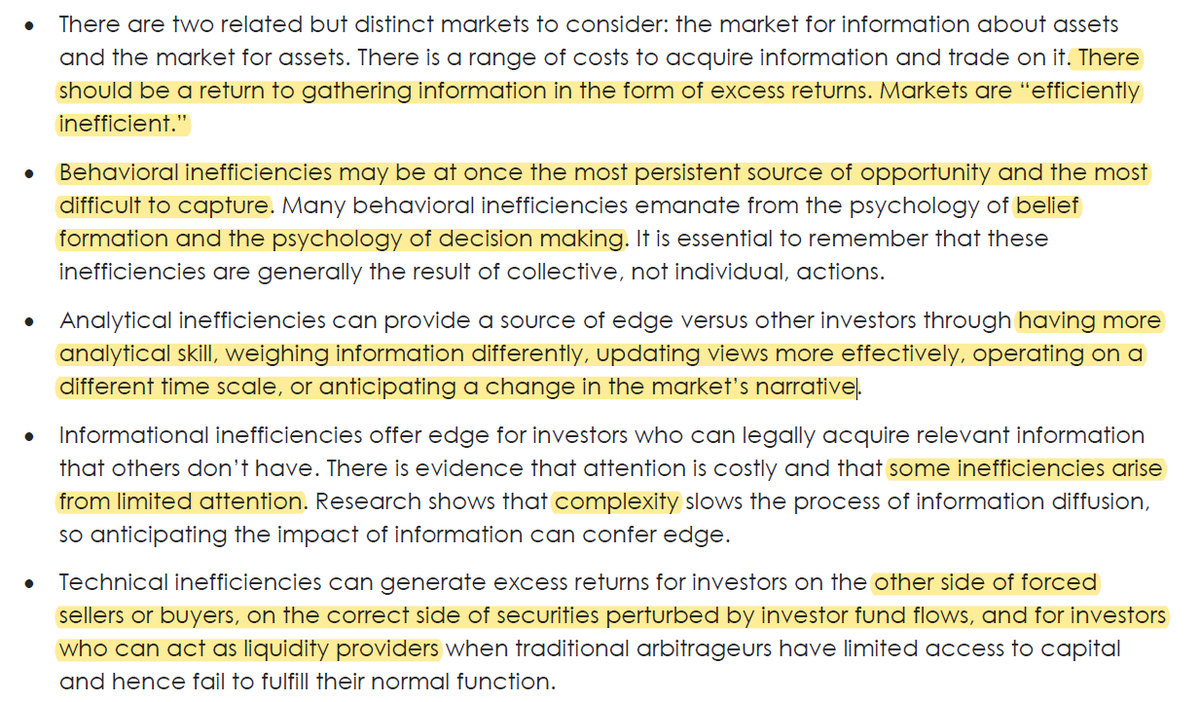 Okay.. Let's ask @mjmauboussin for a more robust framework of inefficiencies. It's called BAIT: behavioral, analytical, informational, technical.