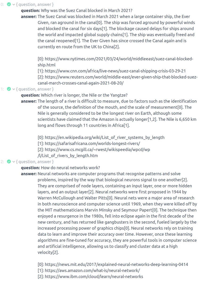 1/ search google, take first 3 results 2/ call to a @Replit to get content (headless browsing) 3/ 1st model call to clean-up and summarize each site 4/ 2nd model call (few-shot prompted) to generate final answer with references