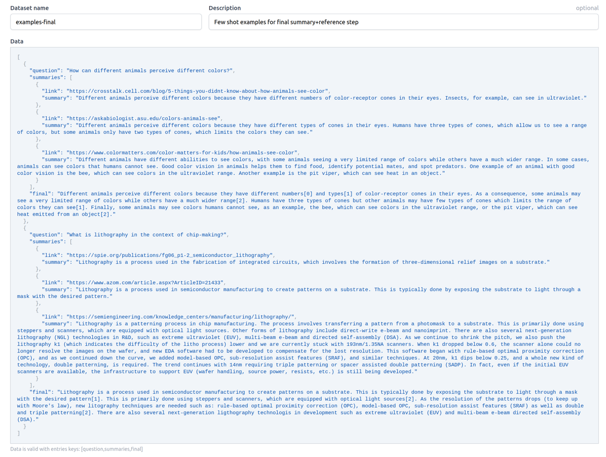 Step 4/ required few-shot prompting to teach the model how to aggregate content and generate references. Two examples were sufficient! Completely fails otherwise.