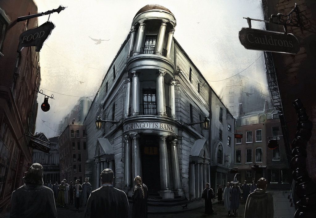 Unsurprisingly, Gringotts Bank stands apart from the Medieval charm with its imposing neoclassical design, pediments and porticos included.