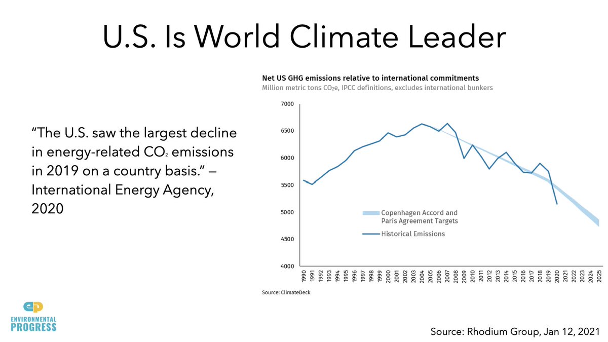 The "whole capitalist system" has resulted in declining emissions thanks to the transition from coal to natural gas, and to less deforestation for agriculture. This is proof that Greta hates capitalism for reasons that have nothing whatsoever to do with climate change.