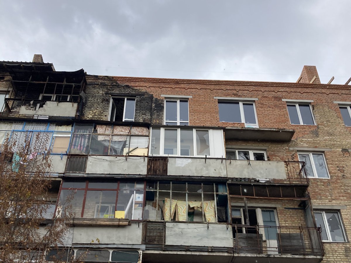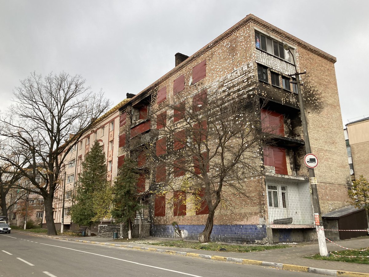 2) Still, the destruction is everywhere. The big markets are hit by bombs and shells (entry sign Novus for a huge market). The whole blocks are destroyed, in some houses several flats burnt.