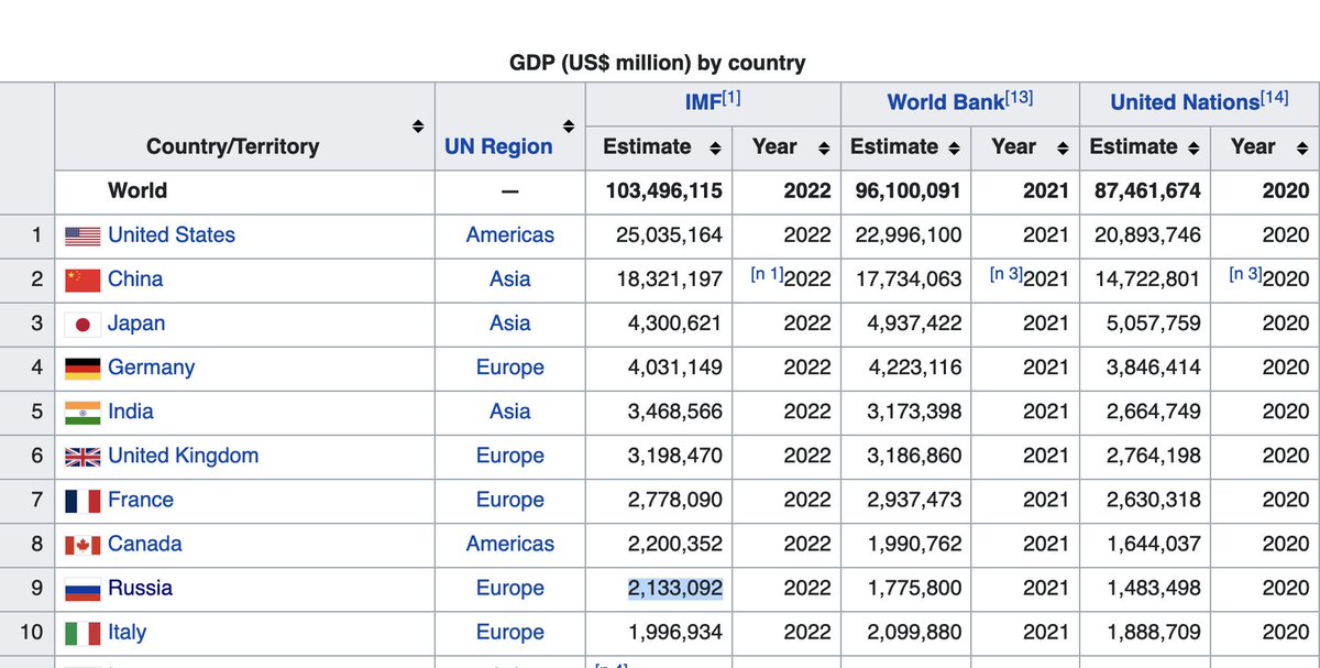 Pour rappel, comme le disait le sénateur américain John McCain, "La Russie, c'est une station service déguisée en pays". L'économie Russe est actuellement entre le Canada et l'Italie, représente moins de 10% de l'économie 🇺🇸 ou 🇪🇺, et reste dépendant de nous pour ses exports
