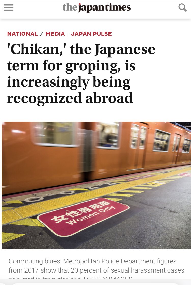 2018.4.21 Japan Times publishes article on 'CHIKAN'