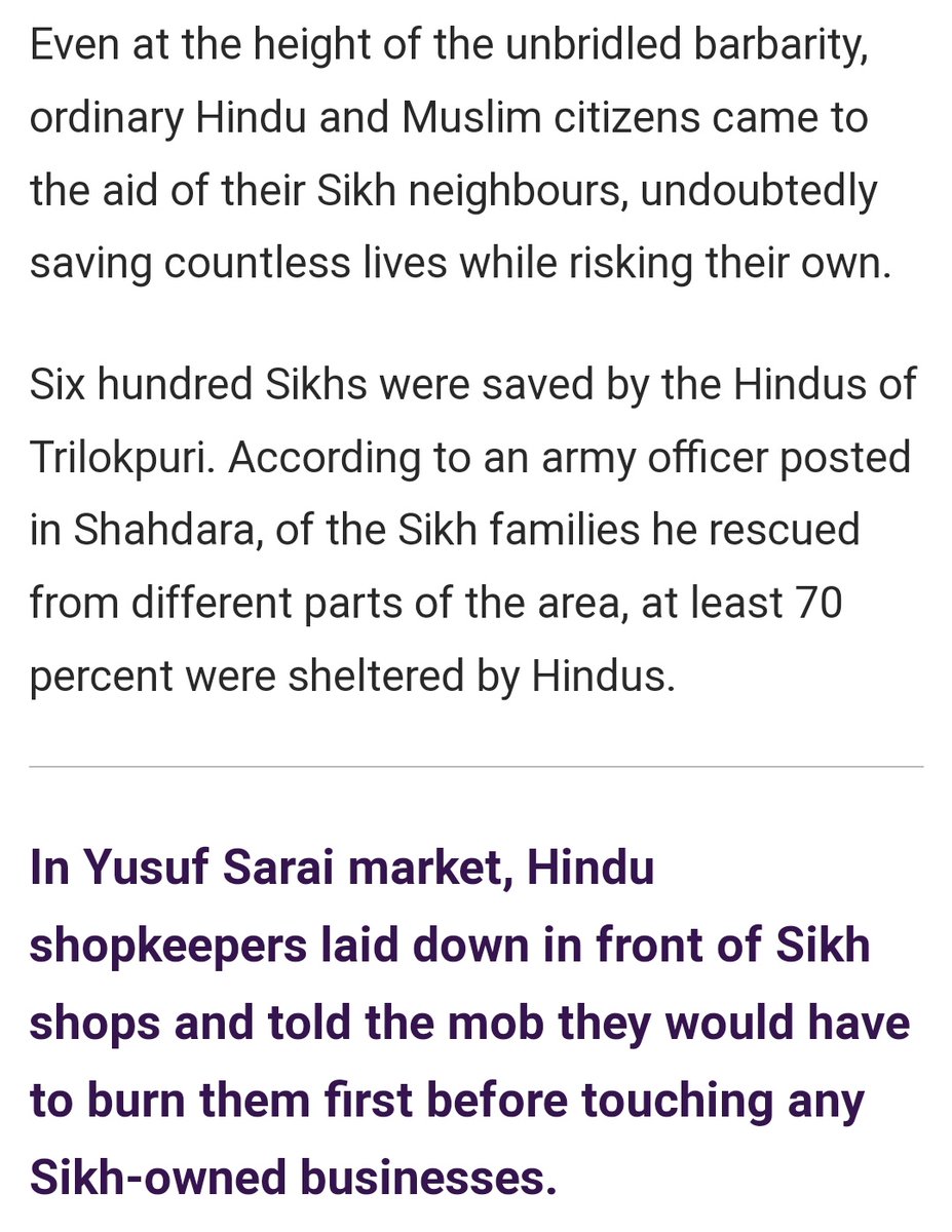 200 Middle-class Hindu families in West Delhi protected Sikh families from πioters,they threatened Hindus that they will ßurn the building if the Sikhs were turned out to them. Hindus formed defence squads & patrolled the building & protected the Sikhs