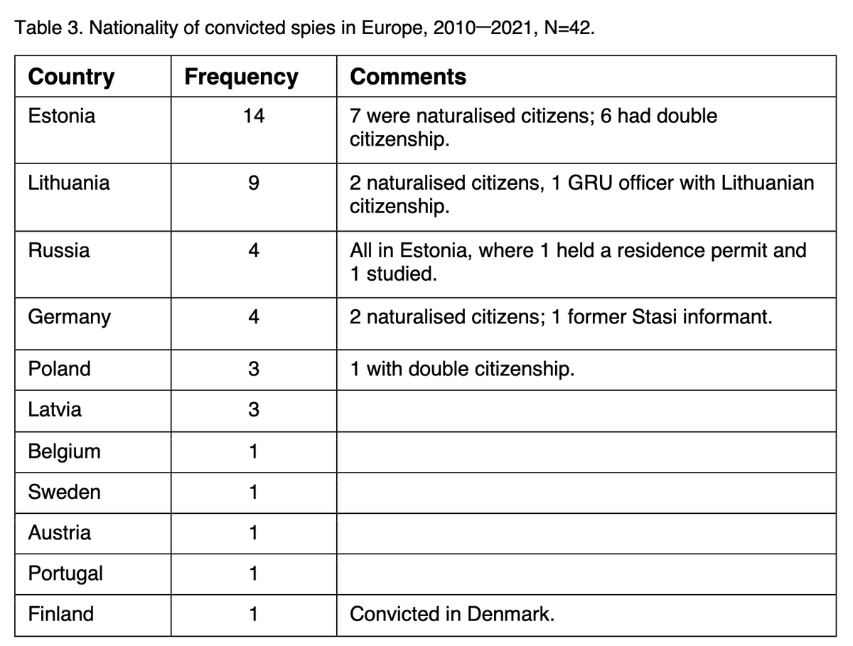 3/ Les pays Baltes et la Pologne sont les plus visés par des cas d'espionnage, en excluant la Russie.