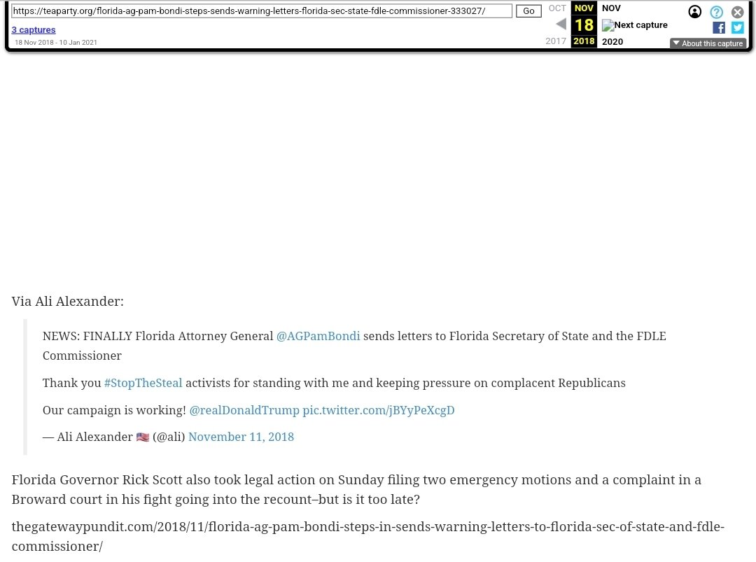 Found a few tweets using Stop the Steal Florida. Including this one which attached a now removed Tea Party [.]org article regarding Ali Alexander & Pam Bondi.
