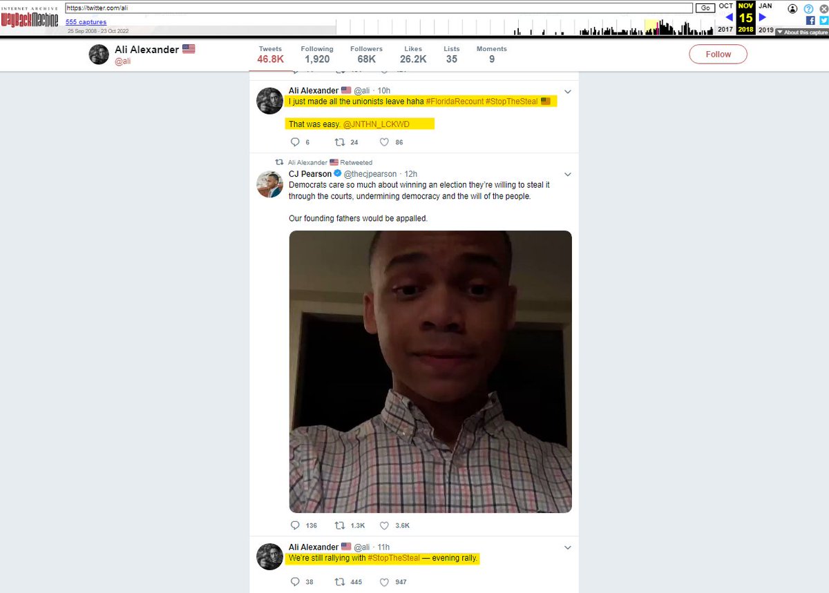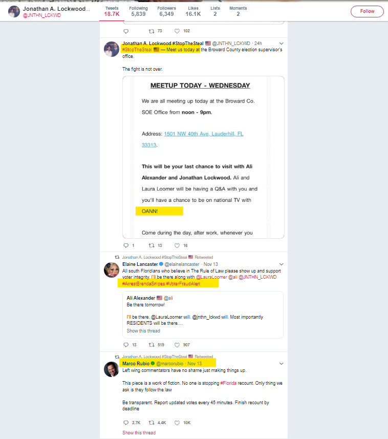 Jonathan Lockwood's archived account for Stop the Steal in 2018 Broward County Florida reads just like the lead up the January 6th.