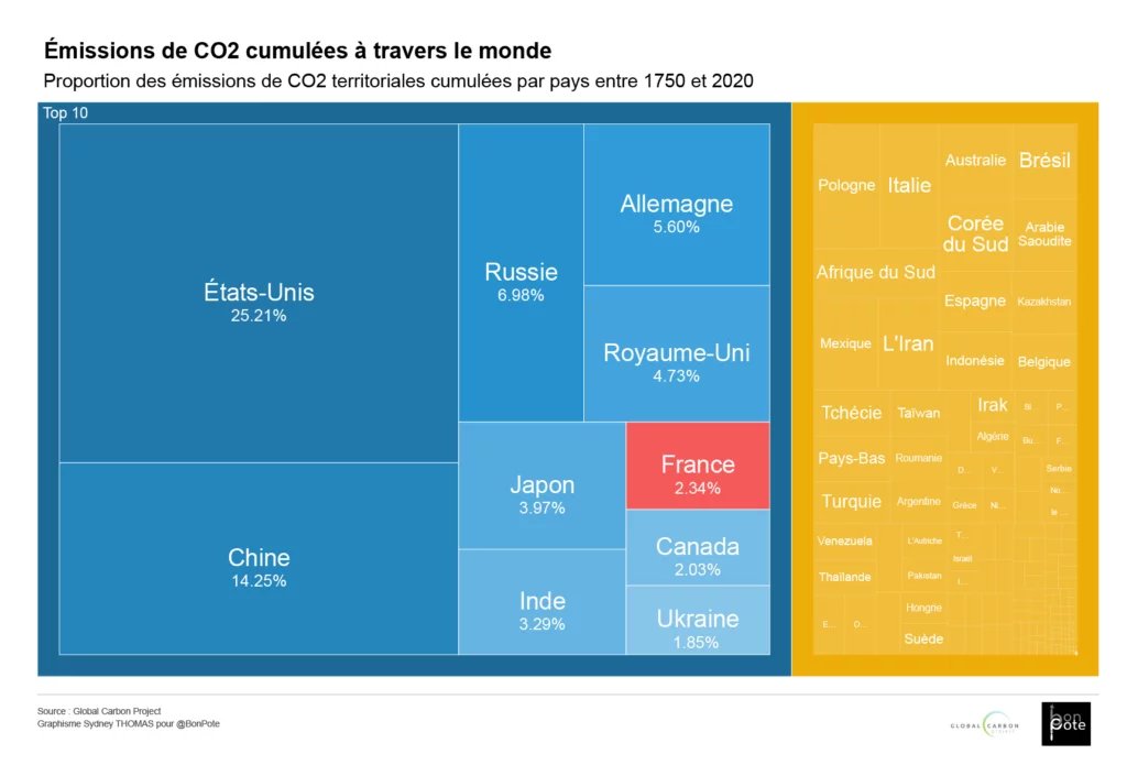 Evidemment ces personnes ne parlent jamais des émissions historiques, alors que la France est le 8e plus important émetteur historique de CO2.