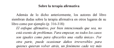 Es un artículo donde revoco las afirmaciones que se vierten en ese libro sobre el enfoque (trans) afirmativo así como los numerosos bulos y tergiversaciones que aparecen en él. Aporto la evidencia científica necesaria sobre cuestiones como...