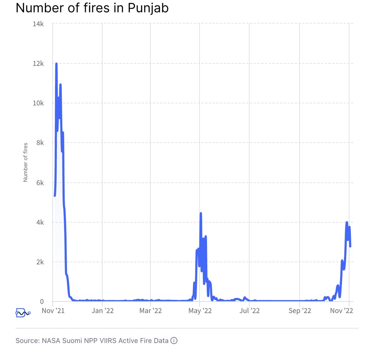 Stubble burning has gone up a lot in the last 30 days, as it does around this time ever year, because farmers have to clear their fields and burning stubble is the most efficient way to do this.