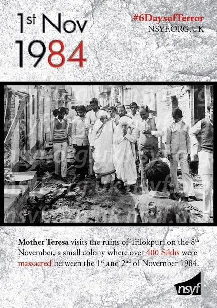 Only MOTHER TERESA visited Trilokpuri Dalit Sikh ghetto of East Delhi, where 400 Dalit Mazhabi Sikhs were butchered in just 2 days of mayhem and where scores of Dalit Sikh women were gang raped.