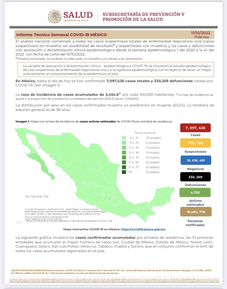 Hoy actualizó el @GobiernoMX la cifra de MUERTES y EXCESO DE MORTALIDAD por #COVID19 al 10 de octubre. Es la cifra OFICIAL, más allá de estimaciones y las pocas pruebas realizadas(15.6M):
