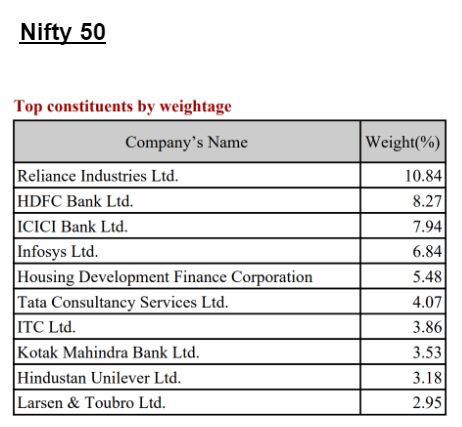 Due to Nifty's high concentration of market capitalization in sector leaders, top holdings of Nifty may exceed 10%. Top holdings in Nifty Jr. did not surpass 5%