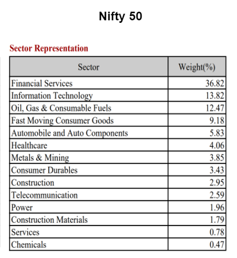 Nifty Jr. includes 6 sectors to make up 63% of the composition, while Nifty includes top 3 sectors to account for over 63% of its makeup.