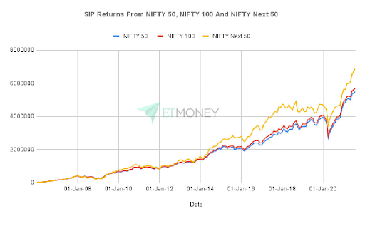 NIFTY Next 50 represents performance of 50 large cap stocks that come after NIFTY50