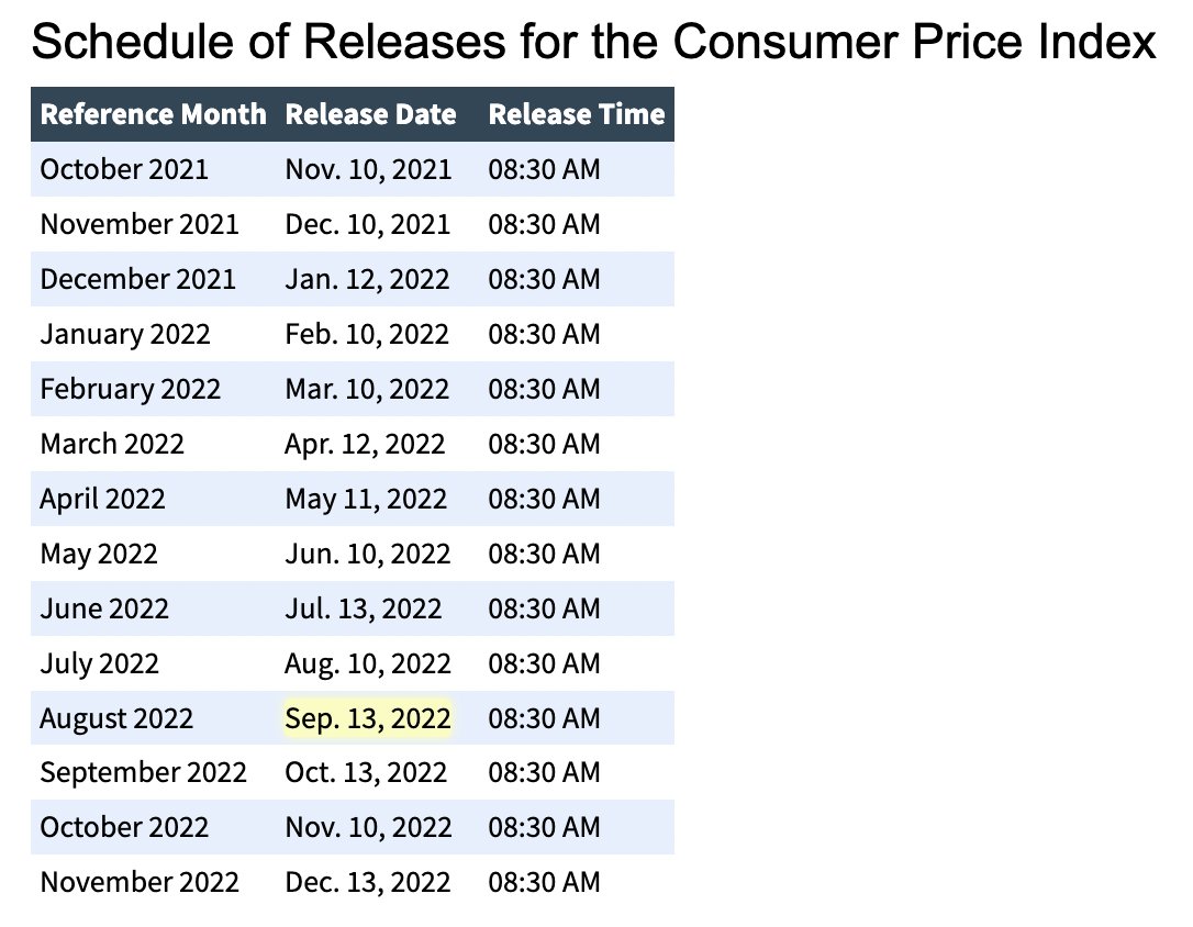 2) August CPI Report - September 13, 2022