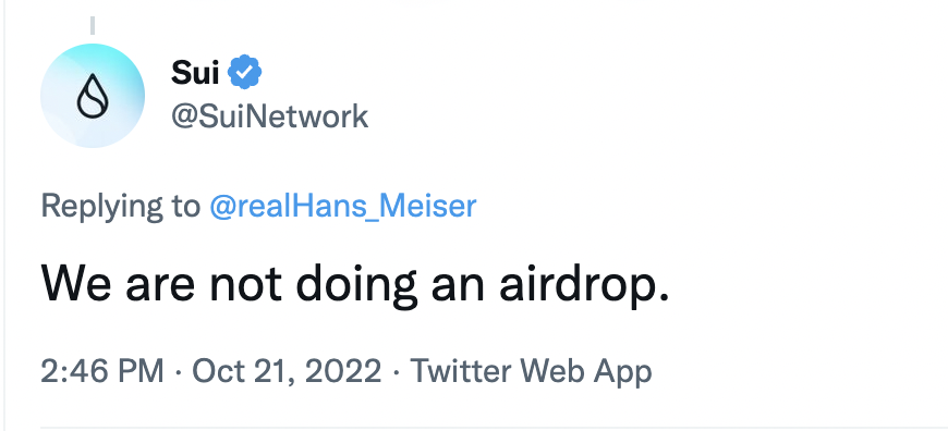 2 - There are many scams going on taking advantage of airdrop season, so Sui wants to minimize stolen funds by officially stating there is no airdrop for the time being (which is probably true).