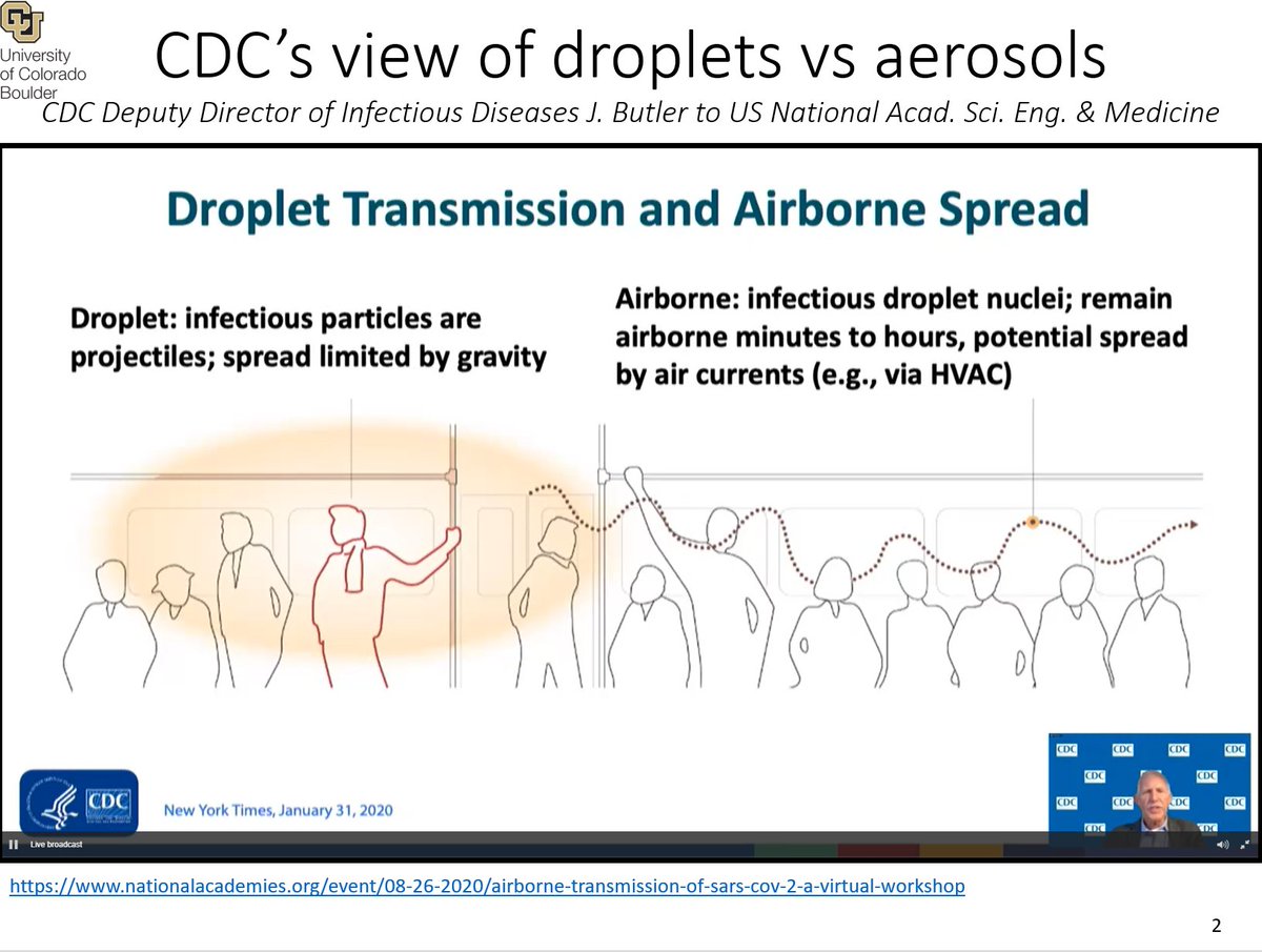 3/ Large droplet transmission is defined as projectiles ("sprayborne droplets") per the @CDCgov presentation to the US National Academies of Science, Engineering, and Medicine here: