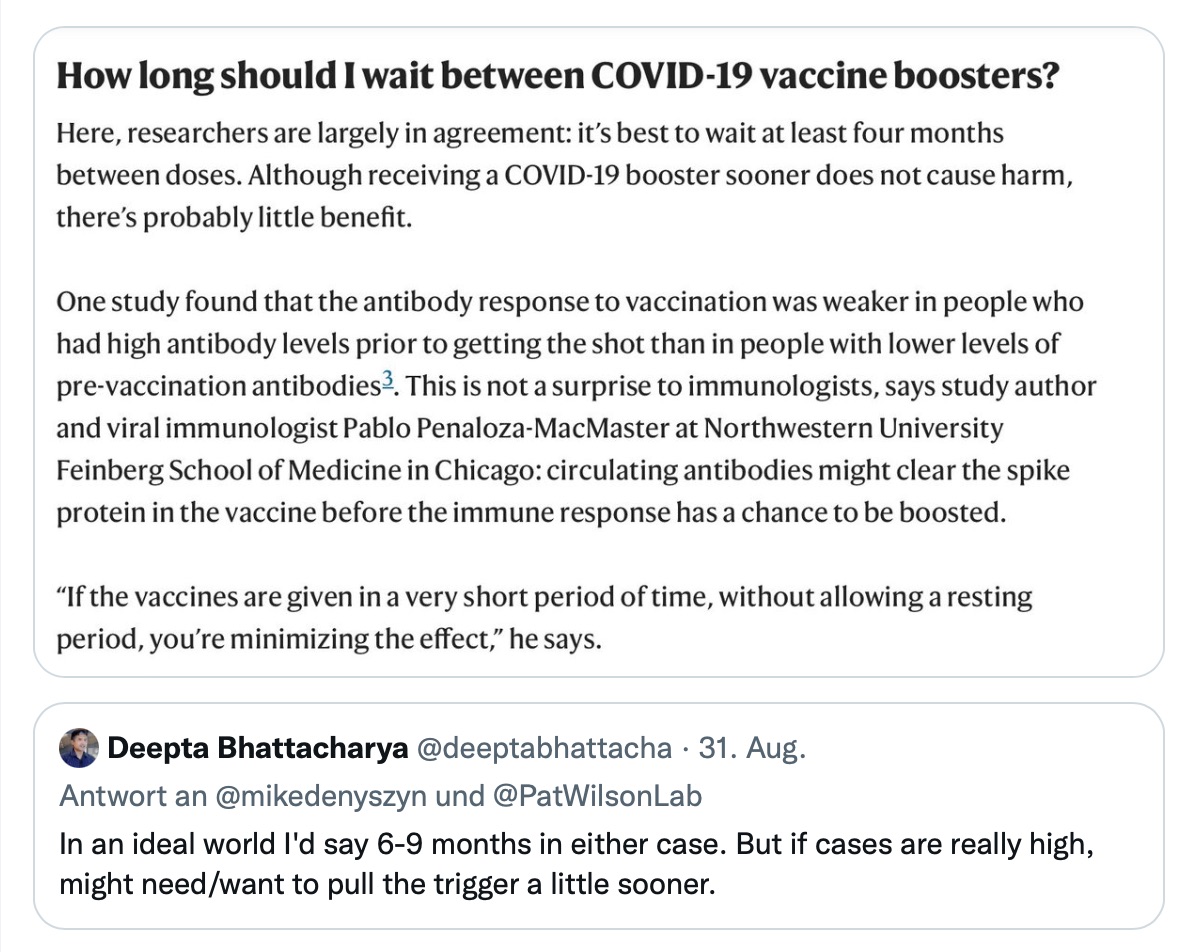 7/ In die Zukunft deswegen, weil Infektionschutz zwar nur passager/gering sein wird, aber Schutz vor schwerem Verlauf erhöht wird und vor allem neue B-Zellen erst reifen müssen und langfristig zu "besseren" Ak und breiterer Immunität führen. Ausführlich ⬇️