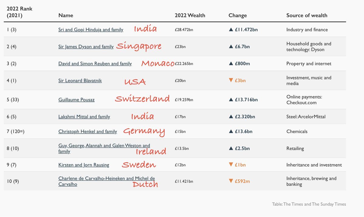 It's remarkable how none of the "top ten UK billionaires" are actually domiciled, and therefore fully taxed, in the UK.