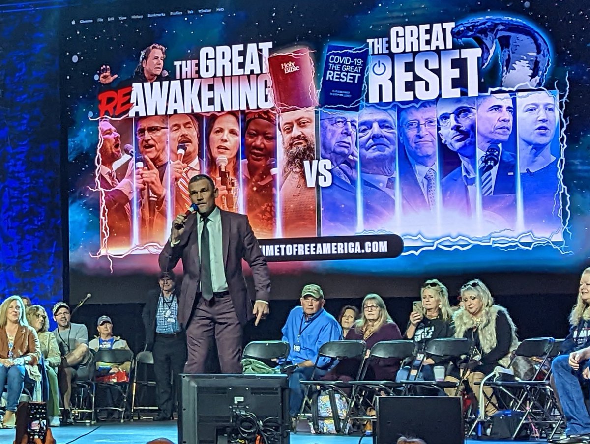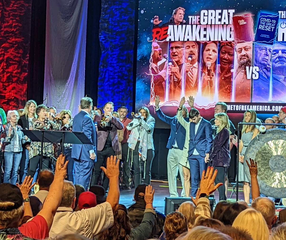 In addition to anti-vax rhetoric, QAnon claims, & election conspiracies, ReAwaken America mixes in Christian worship like it's a church service. People aren't just accepting politics of event; they're embracing it all as part of their faith.