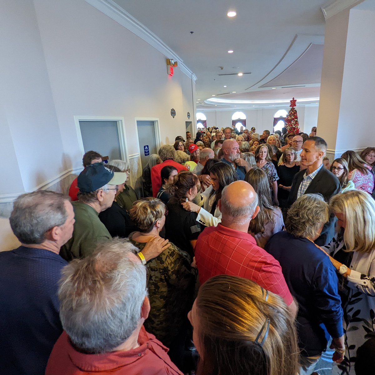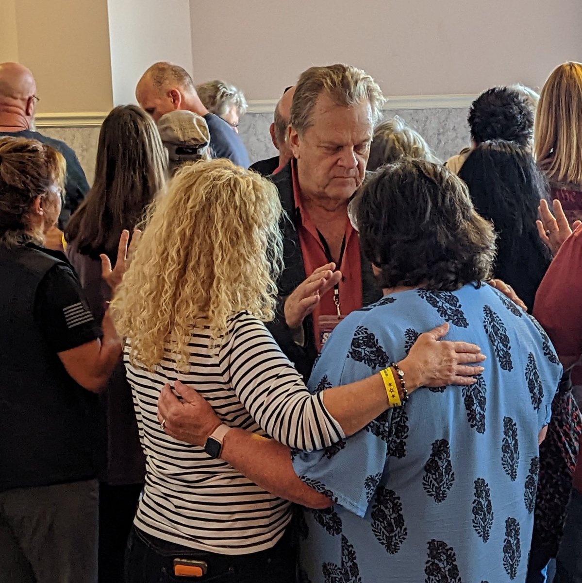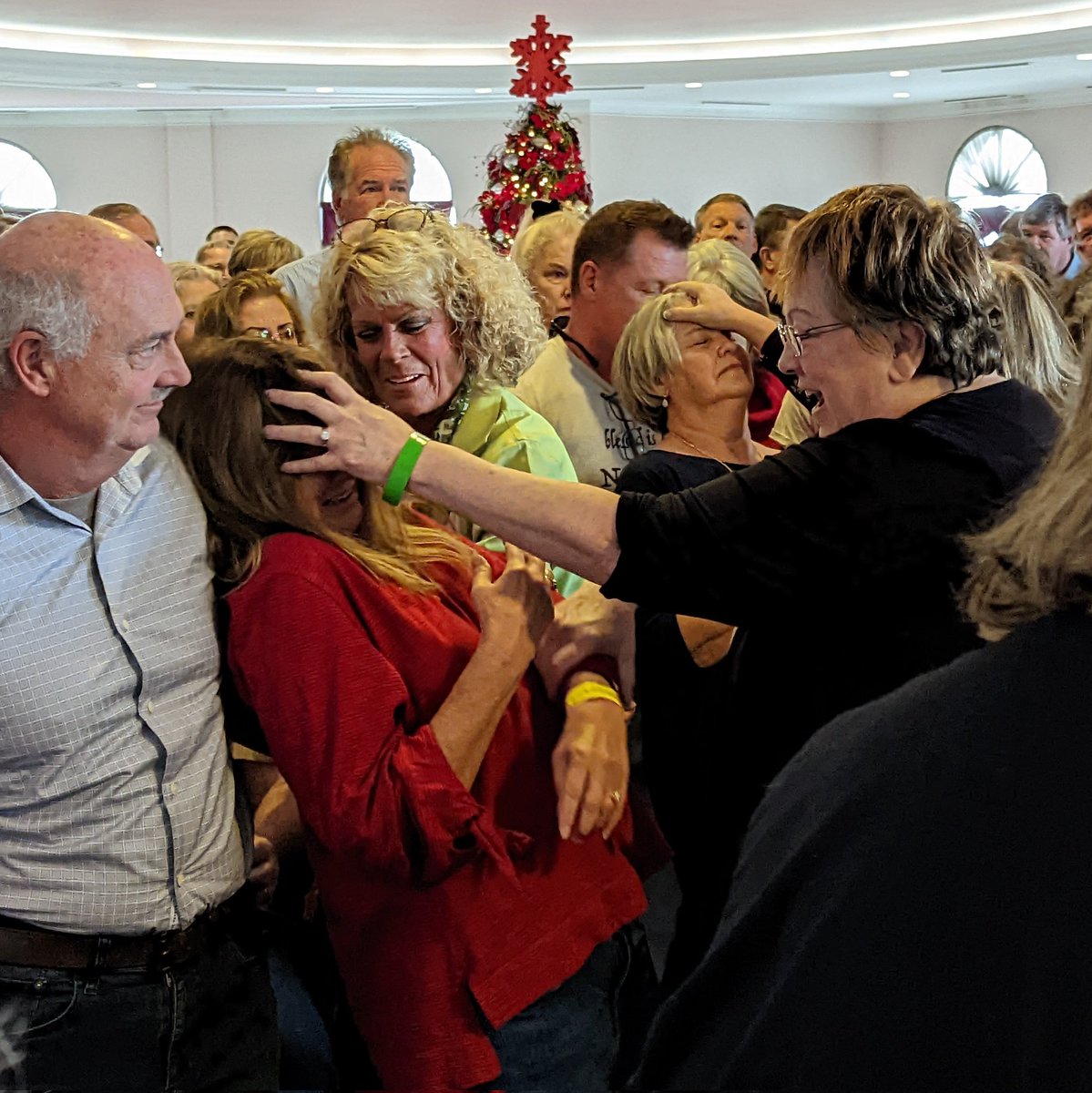 Since not everyone has time to get prayed over during main session, "prophet" Amanda Grace & others went out in lobby to continue praying over people ... in front of Trump store.