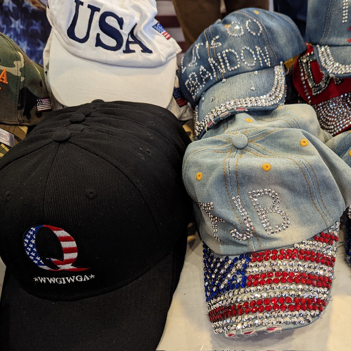 Anna Khait urged crowd to forgive enemies like Biden. But doesn't seem to impact vendors as you can still buy your "FJB"gear, Pelosi as Hitler toilet paper, or Dem doormats.