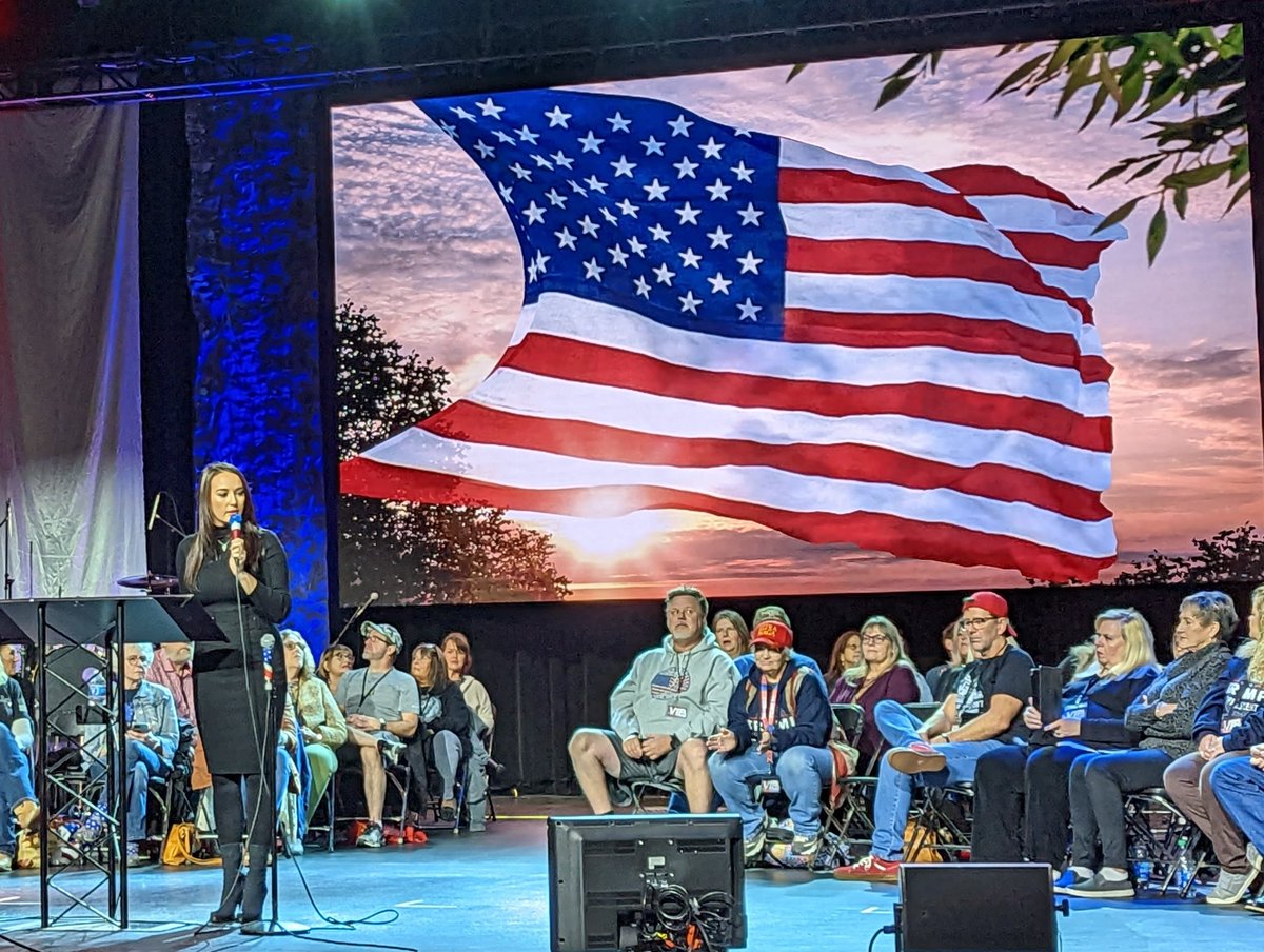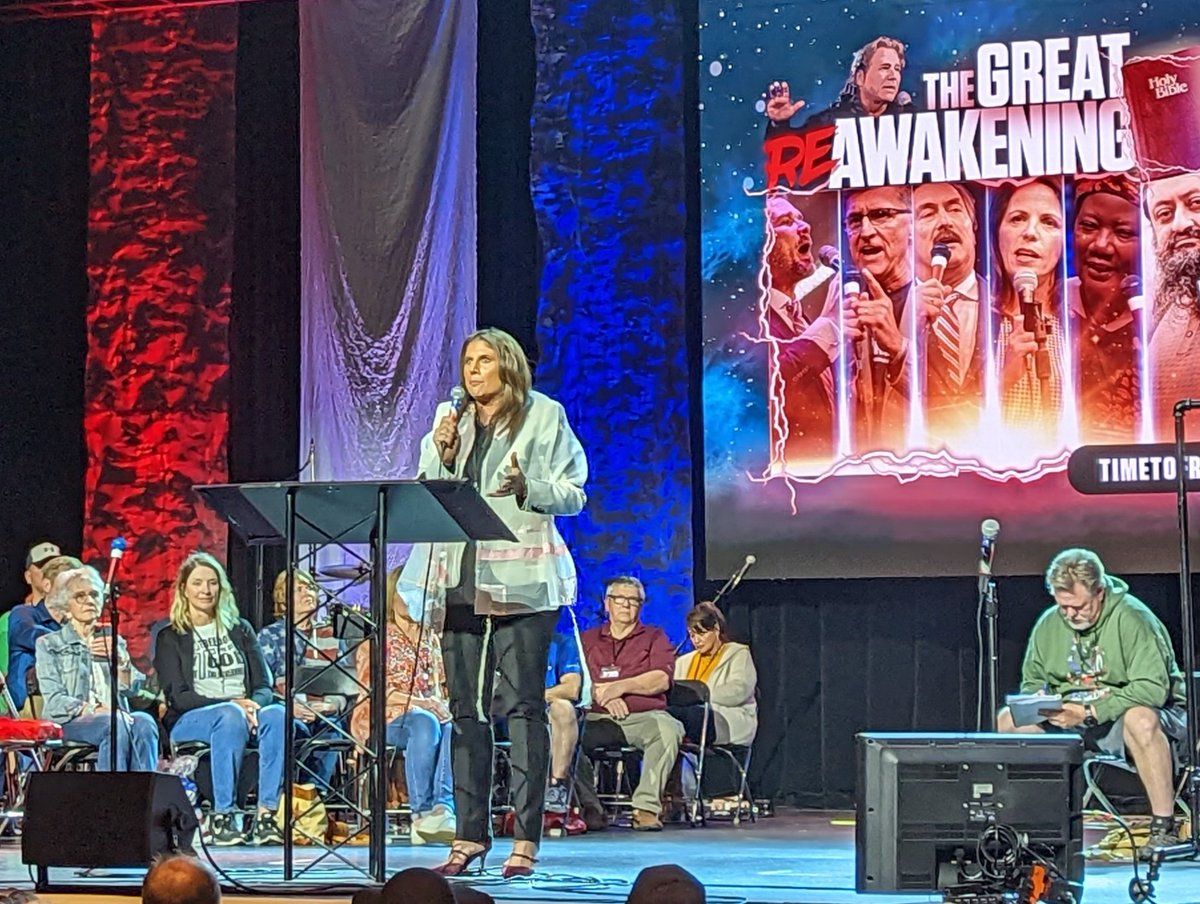 "Prophet" Amanda Grace, who opens each ReAwaken America Tour event by blowing shofar, is back on stage to preach. For more on her, check out @skestenbaum thread: