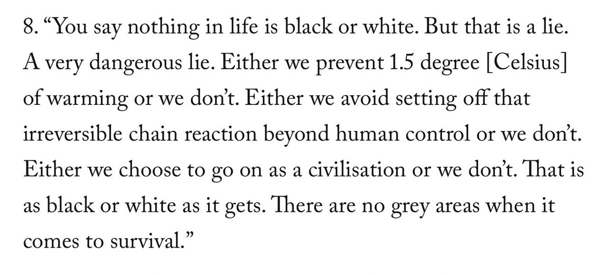 Thunberg’s entire rise to global fame came “offering easy, false solutions & scapegoats” to climate change. She has repeatedly insisted that we must view climate change “in black and white,” and claimed it’s “the easiest” problem except for the existence of her political enemies.