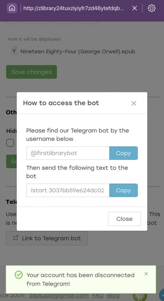 3. then voila zlibrary is back! but as i’ve said, it’s better to connect your account in telegram for easy access to any books.