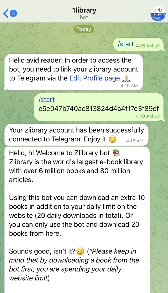 — hey there! this one’s a shortcut if you just want to connect your zlib in telegram without going through TOR. you can also sign up here if you still don’t have an account in zlib. hope it works!!!