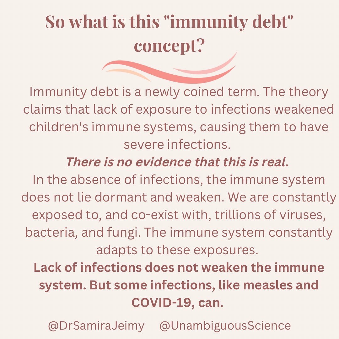 The amazing @DrSamiraJeimy and I collaborated on a post because we are both tired of seeing the term ‘immunity debt’ being thrown around.