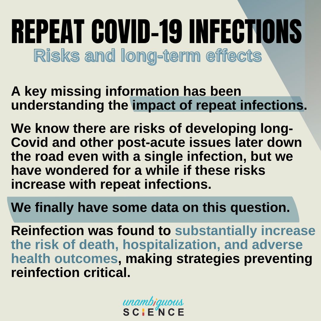 New data: Reinfection was found to substantially increase the risk of death, hospitalization, and adverse health outcomes, making strategies preventing reinfection critical.