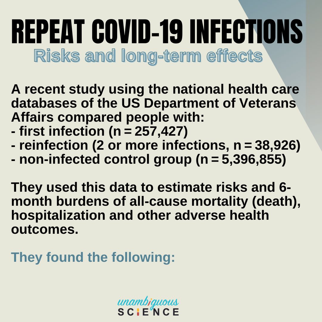 A recent study using the national health care databases of the US Department of Veterans Affairs compared people with first infection, reinfection or no infection.