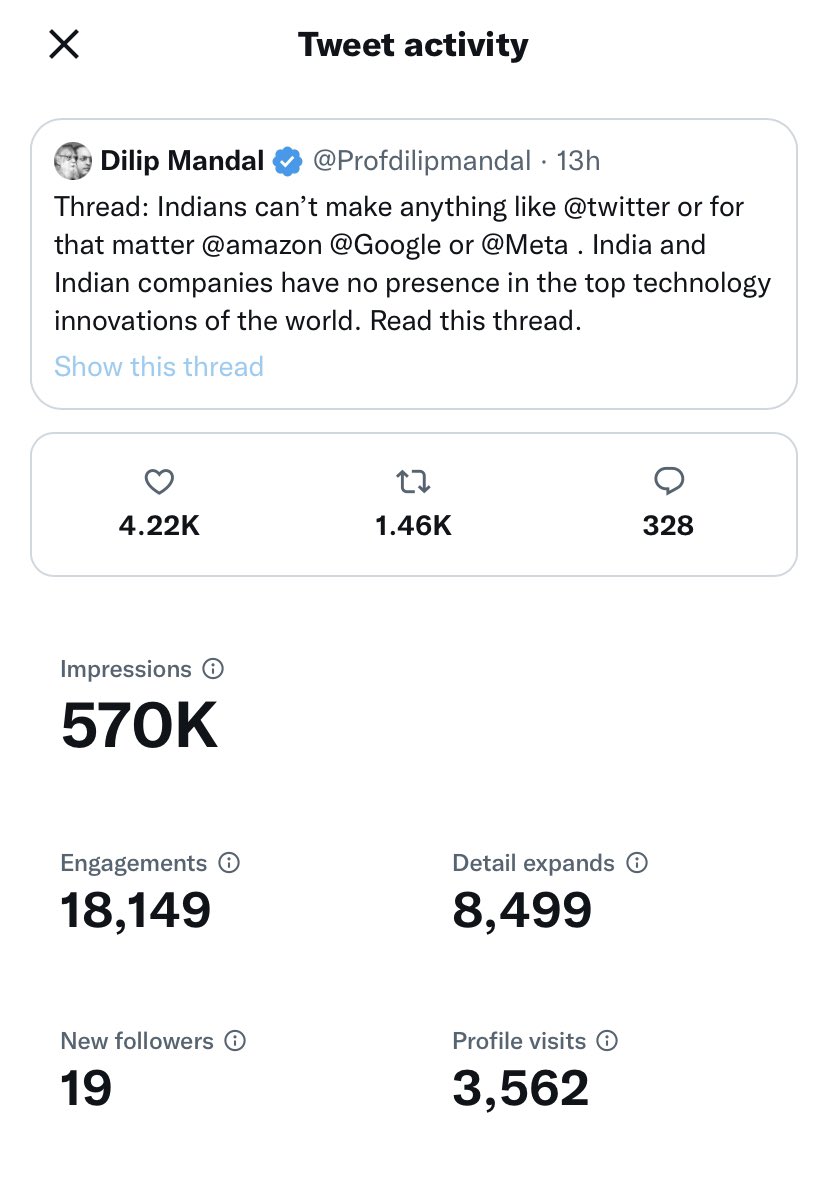 Thread: Indians can’t make anything like @Twitter or for that matter @amazon@Google or @Meta . India and Indian companies have no presence in the top technology innovations of the world. Read this thread.