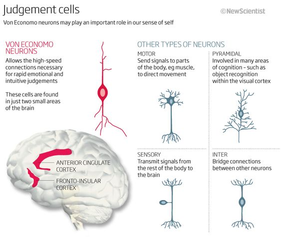 1⃣ Neuronas de Von Economo, fusiformes, "halladas solo en humanos y otros primates, así como en ballenas, delfines y elefantes... especies socialmente complejas". Parece que "evolucionaron de forma separada en tres ocasiones" (evolución convergente).