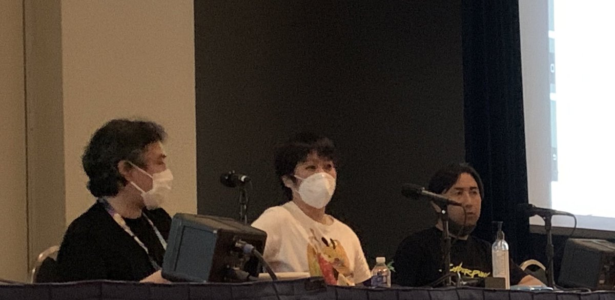 Продолжение темы: сегодня была сессия рисования от Ёсинари Ё [слева] и креативного директора Вакабаяси Хироми [справа]. В центре их переводчик и PR-менеджер — Татэмото Тацуру.